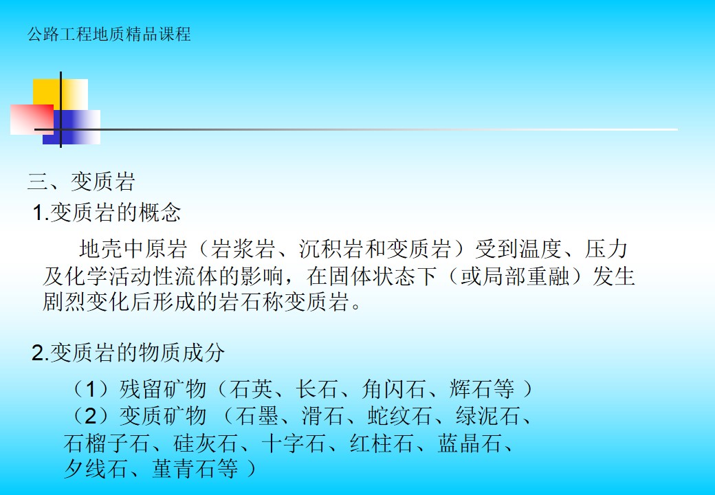 所属课程: 道路养护资源库工程地质课程